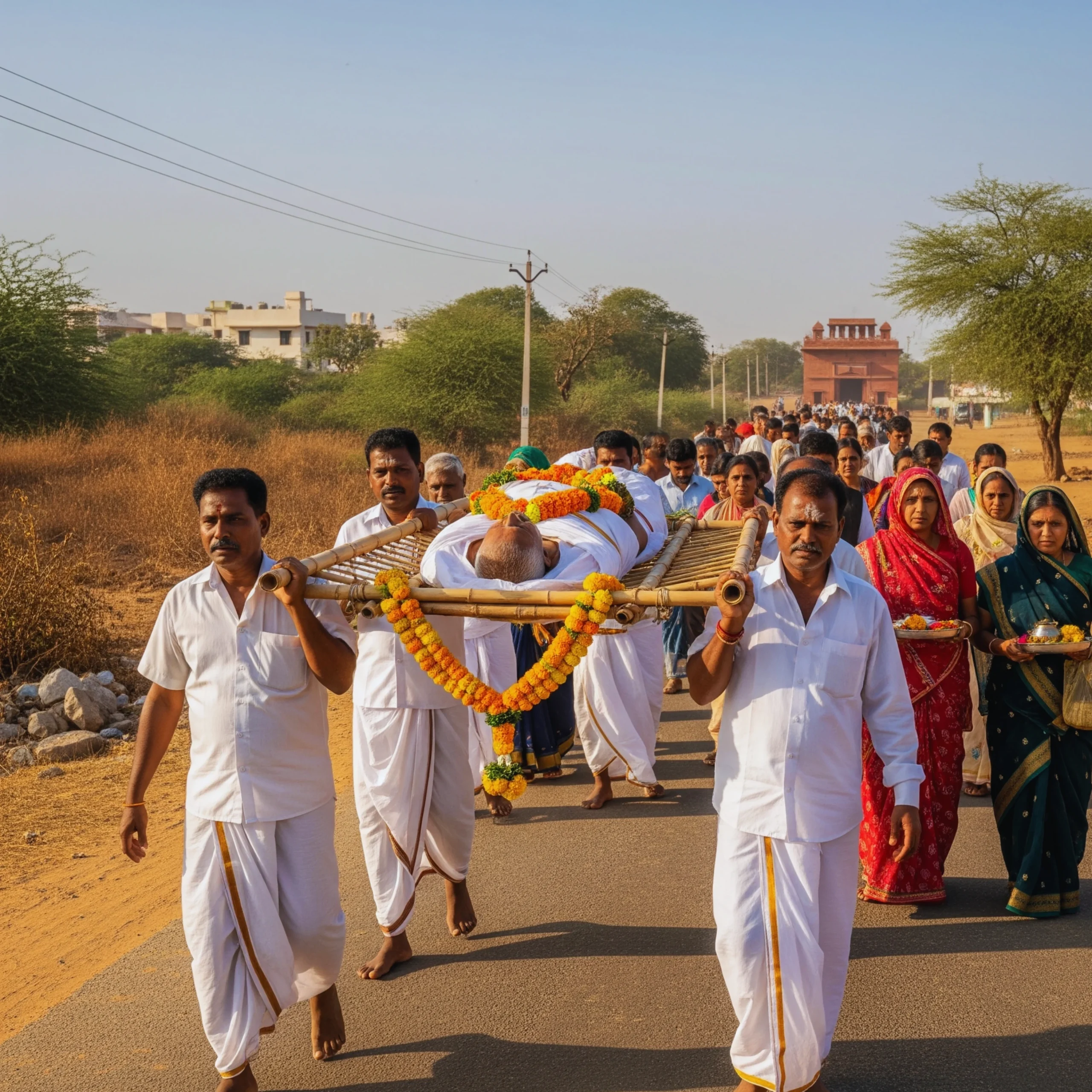 A service that helps the family of the deceased arrange their funeral during their most difficult time. We assist you with funeral preparations, including the provision of a hearse and all the necessary puja materials for the cremation ground, and perform the last rites under the guidance of an Arya Samaj Vedic priest. One phone call takes all your worries away. We arrange for the body to be transported from home to the cremation ground. Our funeral service ensures that the entire process is hassle-free and easy for the family. With expertise in cremation services and Hindu funeral rituals, we offer a wide range of funeral services to ease the burden during this difficult time. Mukhagini Funeral Services takes special care of every aspect of the funeral, from the execution of the last rites to the final rites. Our experienced team ensures that all funeral arrangements are carried out with utmost care and high quality. We assure you that our services will leave the family completely satisfied. You can find comfort in knowing that your loved one’s final journey is being conducted with dignity and reverence. Whether assisting with cremation or arranging a traditional Hindu funeral, our team is ready to provide you with support and guidance.
